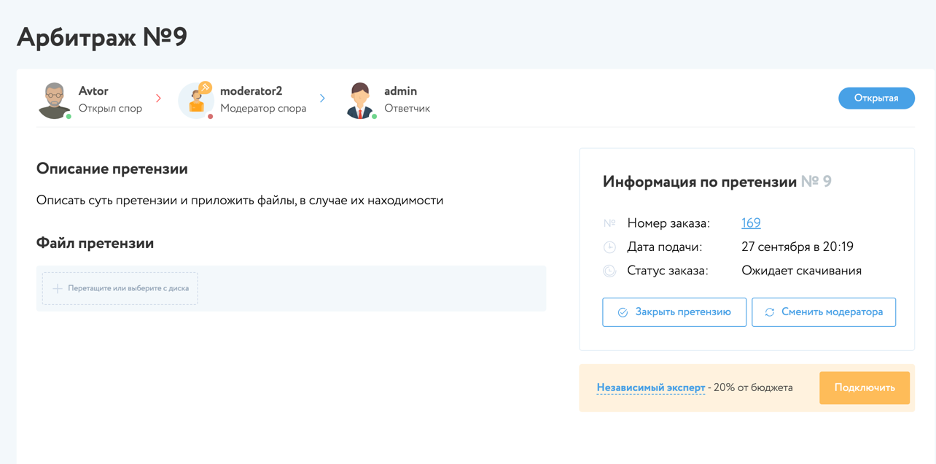 3) Независимый эксперт – пользователь сервиса, специалист, которого стороны спора в арбитраже привлекают для рассмотрения качества выполненной работы;