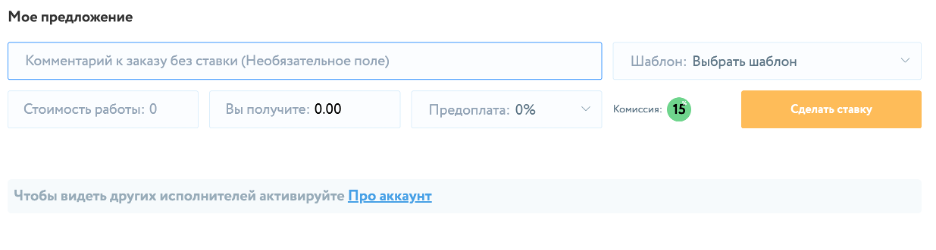 «Комментарий к заказу…» - это, текст, который специалист произвольно заполняет перед тем как сделать ставку.