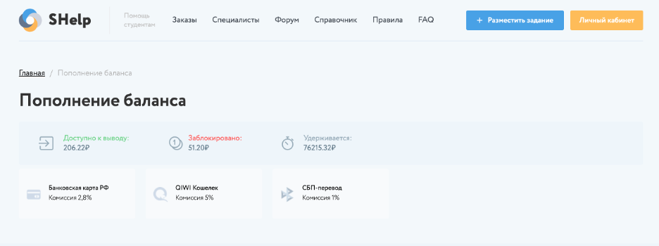 На сервисе SHELP при взаимодействии пользователей для оплаты заказа применяется режим «Безопасной сделки».