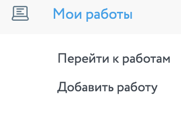 При переходи в данную категорию, пользователь попадает на свою страницу в раздел «Работы», где может посмотреть полный перечень работ, которые находятся на стадии выполнения, доработок, либо которые ранее были выполнены.