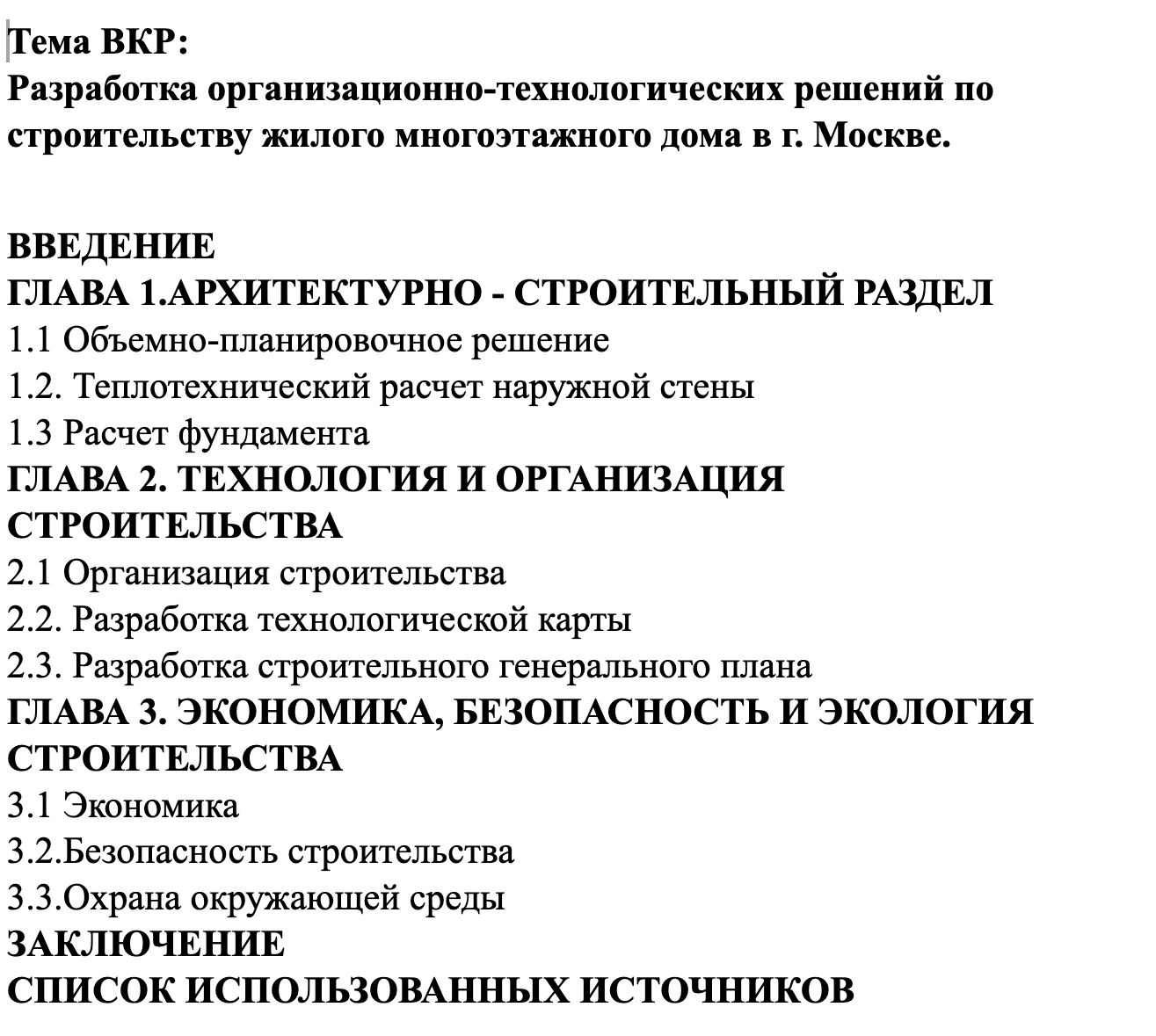 Структура плана дипломной работы